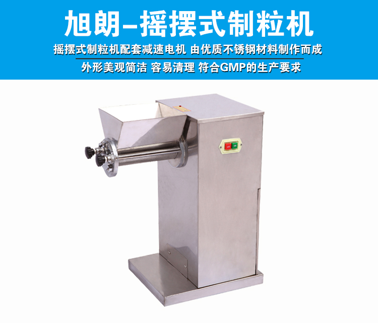 摇摆式制粒机配电机+减速箱,由优质不锈钢材料制作而成,外形美观简洁,容易清理,符合GMP的生产要求。