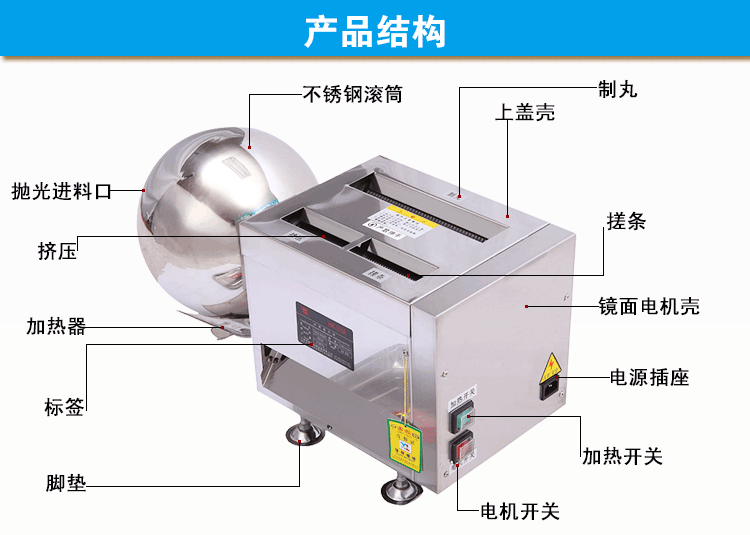 3、本机适用性强。可生产各种粘度的软、硬药丸,制丸合格率高,特别适合于小型药厂试制室,中药研究所、医院、